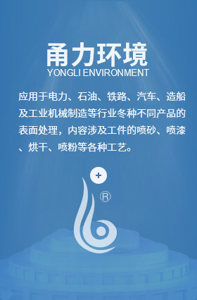 可廣泛適用于電力、石油、鐵路、汽車(chē)、造船及工業(yè)機(jī)械制造等行業(yè)冬種不同產(chǎn)品的表面處理,內(nèi)容涉及工件的噴砂、噴漆、烘干、噴粉等各種工藝。
